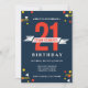 Une invitation à la fête du 21ème anniversaire en bleu marine, rouge et jaune pour tout Américain ! Customisez chaque ligne de texte avec les détails de votre fête et envoyez cette invitation de fête de 21 ans à toute sa famille et à ses amis. Le revers de l'invitation est la coordination bleu marine.