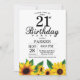 Invitation du 21e anniversaire du tournesol. Fleurs florales et Arrière - plan blanc. Country Vintage Retro. Femmes Anniversaire. 12ème 13ème 15ème 16ème 18ème 20ème 21ème 30ème 40ème 50ème 60ème 70ème 80ème 90ème 100ème, tout âge. Numérique imprimable. Pour plus de personnalisation, cliquez sur le bouton "Customiser" et utilisez notre outil de conception pour modifier ce modèle.