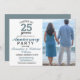 Célébrez vos 25 ans de mariage avec cette invitation de fête pour les 25 ans de mariage avec un texte personnalisable en bleu. Ce design comprend une photo personnalisable pour ajouter votre touche personnelle. Le verso présente une belle couleur bleu-gris.