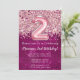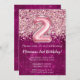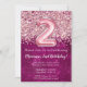 Invitation de 2e anniversaire Girly Magenta and Pink Parties scintillant Invitation de 2e anniversaire pour une jeune fille de 2 ans avec écriture de script moderne et ballons amusants en feuille de papier.