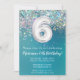 6e Invitation d'anniversaire Parties scintillant Turquoise et argent 6e invitation de fête d'anniversaire pour un enfant de 6 ans avec écriture de script moderne et ballons de papier amusant.