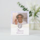 Invitation de fête d'anniversaire personnalisée POSTCARD ÉCHANTILLON — invitations photo de poche entièrement personnalisables avec lavande antique damask arrière - plan et élégant bouton Monogram sur ruban blanc. Ajoutez votre propre photo et customisez le nom, la date et les détails pour l'occasion heureuse. Parfait pour les photos contemporaines ou vintages. Peut être facilement customisé pour les fêtes d'anniversaire, mariages, douche nuptiale, retraite, et autres occasions spéciales. Des enveloppes assorties, des cartes postales et des cartes de remerciements sont disponibles. **REMARQUE : Taille pour CARTES POSTALES. Les enveloppes ne sont PAS incluses. Autres tailles et styles d'invitation disponibles dans la galerie.