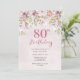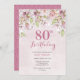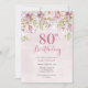 Jolie invitation traditionnelle 80ème anniversaire avec de belles roses roses roses et magnolia et un arrière - plan simple à motifs. © Mini Moi Prints