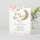 Sur la Lune Baby shower Invitation pour fille avec une lune, étoiles, et belle fausse parties scintillant or.