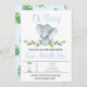 Invitation Baby shower d'aquarelle pour éléphants de garçon L'invitation de baby shower d'éléphant d'aquarelle de garçon présente un joli éléphant avec un peu de feuillage vert sur un arrière - plan blanc. Idéal pour un baby shower à thème d'éléphant de garçon à venir.