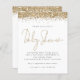Un rapport qualité-prix BUDGET alternative sur une taille plus petite 4,5 x 5,6" semi-brillant poids 110lbs, qui est d'une épaisseur similaire à une carte postale (cependant ne convient pas à l'utilisation comme carte postale.) VEUILLEZ NOTER qu'il y a UN invitation par feuille. Invitation au Baby shower de Parties scintillant d'or budgétaire. Une touche de pétillant pour célébrer la maman d'être avec une fausse bordure de parties scintillant en haut sur les deux côtés et l'en-tête d'occasion dans un script informel ensemble. Personnalisez facilement le reste du texte à vos propres détails.