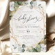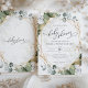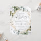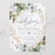 Invitation de Baby shower géométrique Faux Gold et Green. Des aquarelles fantaisistes et une typographie moderne complètent le design. Personnalisez cette invitation de Baby shower avec vos détails de baby shower facilement et rapidement, appuyez sur le bouton customiser pour réorganiser davantage, et formater le style et le placement du texte.