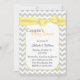 Invitation du baby shower du couple élégant faite dans un motif de zigzag gris-clair et blanc de chevron. Les graphiques d'un secteur blanc bordé décoratif jaune pâle des textes, au milieu, a un ruban et un arc assez jaune pâle, au dessus. Le postérieur est fait dans le même motif de chevron, avec un autre secteur blanc des textes, au fond. Personnalisez tout le texte, avant et de nouveau au costume vos besoins d'événement.