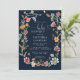 Invitation du Baby shower Fleur sauvage bleu de la Marine. Cette invitation au baby shower élégante et élégante présente de magnifiques Fleurs sauvages aquarellés peints à la main. Trouvez les articles correspondants dans la collection de rêves Fleurs sauvages bleu marine.