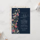 Invitation du Baby shower Fleur sauvage bleu de la Marine. Cette invitation au baby shower élégante et élégante présente de magnifiques Fleurs sauvages aquarellés peints à la main. Trouvez les articles correspondants dans la collection de rêves Fleurs sauvages bleu marine.