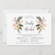Une invitation à la Bat mitzvah florale chic présente le nom de votre fille dans un élégant script de calligraphie, encadré de pêches et de fleurs roses rousses, bourgeons et verdure. Personnalisez avec les détails de votre événement ci-dessous, y compris l'espace pour la cérémonie religieuse et la célébration ou la fête.