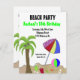 Une amusante invitation à la fête d'anniversaire de plage avec une plage de sable, palmier, parasol de plage et plus. Customisez avec toutes les informations de votre parti comme vous le souhaitez. Idéal pour les fêtes d'anniversaire d'été.