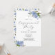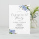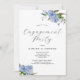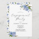 Elégante invitation de fiançailles avec aquarelle illustration de fleurs de pivoines bleues avec verdure. Parfait pour votre mariage de printemps ou d'été.