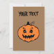 Carte de vacances personnalisée avec citrouille de style dessin animé pour Halloween. Vierge à l'arrière pour les messages manuscrits.