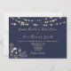 Elégant, rustique, or rose et bleu marine mariage le tout dans une invitation, avec des lampes à cordes, dentelle dorée, site web et code QR pour RSVP à l'arrière.