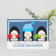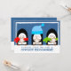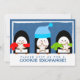 Trois petits pingouins tiennent leurs biscuits délicieux dans cette invitation à la fête des biscuits sucrés.