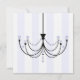 Une invitation sophistiquée et polyvalente avec l'illustration d'un lustre en cristal. Le Arrière - plan est des rayures verticales bleues et blanches. Les caractéristiques latérales en face correspondent à des arrière - plans rayés bleus et blancs. La section la plus simple est composée de garnitures noires. Personnalisez le texte noir avec les détails de votre événement. Recherchez les articles correspondants tels que la poste, la papeterie et les autocollants chez Jill's Paperie.