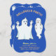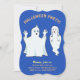Belle Halloween Trumpy et Munchy fantômes Invitation. Il y a un motif fantôme sur arrière - plan bleu à l'arrière. Tous les textes et numéros sont prêts à être personnalisés.