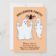 Belle Halloween Trumpy et Munchy fantômes Invitation. Il y a un motif de chauve-souris à l'arrière. Tous les textes et numéros sont prêts à être personnalisés.