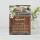 Une invitation romantique à la fête de fiançailles avec un livre dans une scène de rêve paysage avec un couple dans une étreinte passionnée et un texte en bois foncé arrière - plan avec élégantes roses blanches. Si vous ne voulez pas utiliser votre propre photo, vous pouvez supprimer la photo du modèle et révéler un arrière - plan en bois foncé au dos de la carte. Beau pour les amateurs de livres ou un mariage de bibliothèque planifié ou anniversaire.