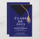 Commencez votre évènement avec notre casquette noir et or tendance et élégant avec une invitation à la remise des diplômes arrière - plans bleus. Une invitation parfaite pour obtenir un diplôme d'études secondaires ou collégiales. Remplissez simplement vos informations, ajoutez votre photo et vous êtes tous prêts à partir. Visitez notre magasin pour voir cet invitation de diplôme dans un large assortiment de couleurs scolaires