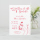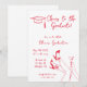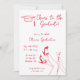 Invitation Retro scribble Graduation Party avec casquette et jambes avec talons et verre de cocktail.