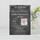 La typographie de ce tableau noir de soixante-dixième anniversaire est une invitation photo moderne, branchée et chic. Fabriqué dans la typographie traditionnelle en noir et blanc avec une variété de polices, ce invitation de fête chic de 70e anniversaire est une façon unique pour la famille invitation et les amis à une fête d'anniversaire spéciale. Les cartes RSVP sont également disponibles.