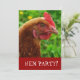 Invitation entièrement personnalisable pour une soirée de bachelorette de nuit pour filles, souvent appelée "Hen Party" Invitation tous les poussins dehors pour célébrer avec cette jolie poule ! Avec un pays rural, vous vous sentirez près portrait photo d'une jeune poule pondeuse rouge.
