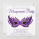 Invitation vos invités avec cette élégante invitation à la mascarade avec un beau masque violet avec une simple typographie contre un arrière - plan blanc. Ajoutez simplement les détails de votre événement sur cet modèle facile à utiliser pour en faire une invitation unique. Retourner la carte pour révéler une couleur violette royale au dos de la carte.
