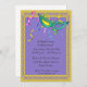 Invitation festive pour votre fête Mardi Gras avec masque et banderoles colorés sur arrière - plan violet avec bordure or. Facile à customiser avec les détails de votre événement.