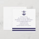 Ces invitations navales et blanches sont parfaites pour une soirée de graduation sur le thème de la croisière. Le design se compose d'une typographie classique et élégante, à côté d'un monogramme d'ancre marine.