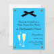 Jolie invitation bleue avec un graphique d'un arc noir en haut. Deux verres de champagne sont sur la gauche. Une invitation parfaite pour votre réveillon de Nouvel An. Customisez tout le texte dans le style, la couleur et la taille de la police pour convenir à vos goûts. Ajoutez d'autres champs de texte si vous le souhaitez.