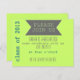 Invitation à la fête de graduation avec un arrière - plan kiwi avec des lettres turquoises et grises. Customisez avec votre nom et les détails de votre fête !