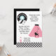 Personnalisez cette invitation à la soirée rose, noir et bleu rétro1950's sock hop, changez simplement les détails de la fête et vous avez fini! Revêtu de à damiers de sol rose et noir, jupe de caniche, disques, saddleshoes et un milk-shake.