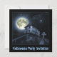 Invitation avec art photographique original de scène de nuit avec pleine lune et maison hantée.