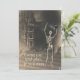 Sur cette invitation d'Halloween à l'atmosphère vintage, une vieille demeure délabrée peut être aperçue dans l'arrière - plan, avec quelques corbeaux (ou sont-ils des corbeaux ?) qui passent devant. Au premier plan, un squelette tient un violon noir au-dessus de son crâne grinçant, demandant au récipiendaire de "Sortir et jouer, si vous osez", et un fragment de manuscrit musical n'est que faiblement visible. Au verso, modifiez le texte pour qu'il corresponde aux particularités de votre événement.