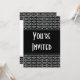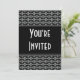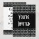 Elégante invitation à la fête en noir et blanc. Ajoutez vos propres détails d'événement. Disponible sous forme d'assortiment sur cartes plates, cartes pliées, cartes postales, cartes photographiques et timbres-poste.
