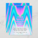Personnalisé Neon Holographic Iridescente Y2K Universal Party Invitation cartes montrant l'arrière - plan lumineux abstrait vaporwave ainsi que votre texte personnalisé et le nom du parti. Idéal pour les invitations d'anniversaire, les invitations de douches pour bébé, quinceanera, les invitations sucrées de 16 fêtes et toute fête colorée.