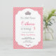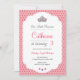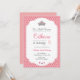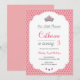 Invitation de Princess Party rose avec une illustration de la couronne et un arrière - plan motif diamant. Parfait pour la fête d'anniversaire d'une fille.