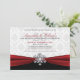 Un beau thème hivernal avec un ruban rouge foncé, flocon de neige argenté et bel arrière - plan blanc damassé pour ces invitations de fête sur mesure.