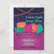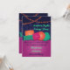 Une invitation au salon des nuits arabes, ludique et colorée, qui est idéale pour les fêtes d'anniversaire, de narguilé et autres fêtes. Ce design est amusant et coloré avec rose, turquoise, bleu et orange. Il se compose d'un design avec des coussins sur un coussin salon et des lumières suspendues au-dessus. Dans l'arrière - plan est un simple paysage urbain arabe.