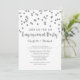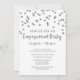Invitations personnalisées à des fêtes de fiançailles modèles dans un motif de confetti argenté glamour et du texte écrit à la main. Veuillez noter que la parties scintillant est imprimée uniquement.