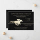 Voici une invitation impressionnante pour cette prochaine soirée hippique d'horlogerie ! L'avant est orné d'un cheval de course en silhouette dorée et de jockey qui courent le long de deux lignes d'or assorties. Votre texte personnalisé est également en or, et contenu dans huit champs de texte. Tout est placé sur un arrière - plan noir dramatique. Le dos de l'invitation est également noir, avec un champ de texte supplémentaire fourni en coque vous avez besoin. Élégant !