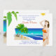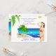 Une invitation lumineuse et colorée, parfaite pour un week-end de bachelorette à thème sur la plage. Ces charmantes invitations sont faites par une plage tropicale et une femme, en bikini, qui regarde vers le soleil. L'arrière est tout aussi joli que l'avant.