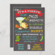 Super cool et moderne Tacos et Margaritas Engagement Party Invitation. Faites une Fiesta mexicaine avec tacos, tequilla & margaritas avec maracas et typographie amusante contre un arrière - plan noir en tableau noir. Illustration tirée à la main par McBooboo.