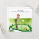 "Invitation vos compagnons de golf à un tournoi de golf de St. Patrick’s Day amusant et festif avec cette carte d’invitation élégante! Avec un parcours de golf dynamique, des shamrocks et un thème vert chanceux, cette carte donne le ton parfait pour une journée de golf, de compétition et de gaieté irlandaise. Idéal pour les tournois, les événements club ou les rassemblements de golf amicaux !"
