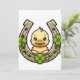 Invitation vos invités à une fête d'inspiration irlandaise avec cette invitation joyeuse avec un canard de dessin animé assis sur un fer à cheval simplifié décoré de motifs celtes. Parfait pour les fêtes de la Saint Patrick ou les évènements fantaisistes.
