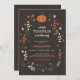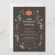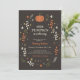 Une Invitation de Baby shower d'automne Little Citrouille présente une bordure de feuilles d'automne colorée sur un arrière - plan marron avec un traitement de type script élégant et mignon. Personnalisez-le avec les détails de votre événement. Une belle invitation, parfaite pour votre événement !