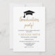 Élégant Casquette Graduation Party Invitation. avec casquettes en mortier noir en chute, et un modèle de texte moderne qui est facile à personnaliser.