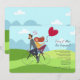 Une invitation amusante et adorable à une fête de fiançailles mettant en vedette un couple à vélo prenant un tour de joie avec un ballon en forme de cœur. (<a href='https://www.freepik.com/free-vector/valentine-s-day-background_1477847.htm'>Conçu par Freepik</a>). <br/><br/>La carte est facile à personnaliser avec votre libellé, police, couleur de police et choix parmi six types de papier.<br/><br/>Pas exactement ce que vous cherchez ? Tous nos produits peuvent être conçus sur mesure pour répondre à vos besoins sans frais supplémentaires.<br/><br/>Contactez-nous simplement à heartfelthelper@gmail.com<br/><br/>Produits de coordination disponibles :